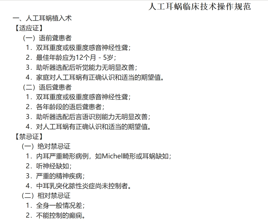 原卫生部《人工耳蜗临床技术操作规范》部分内容