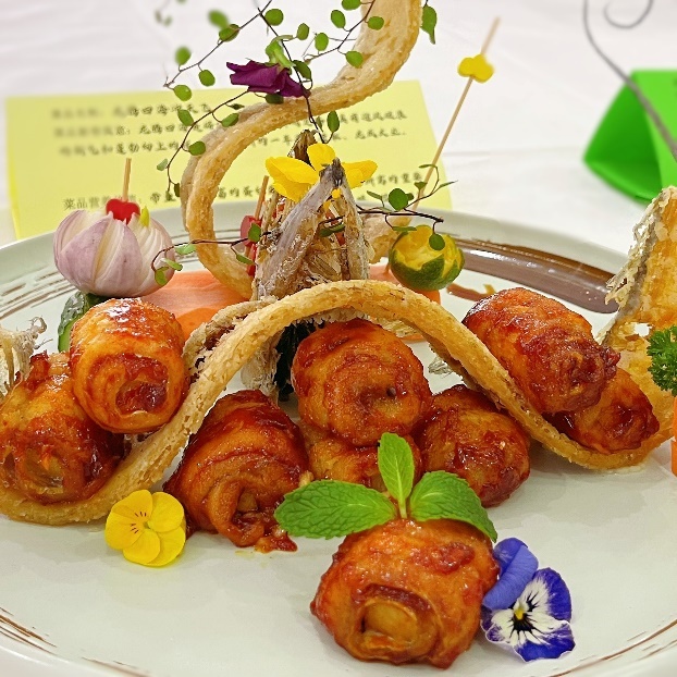 菜品《龙腾四海冲天飞》寓意祥龙腾飞,龙成大业