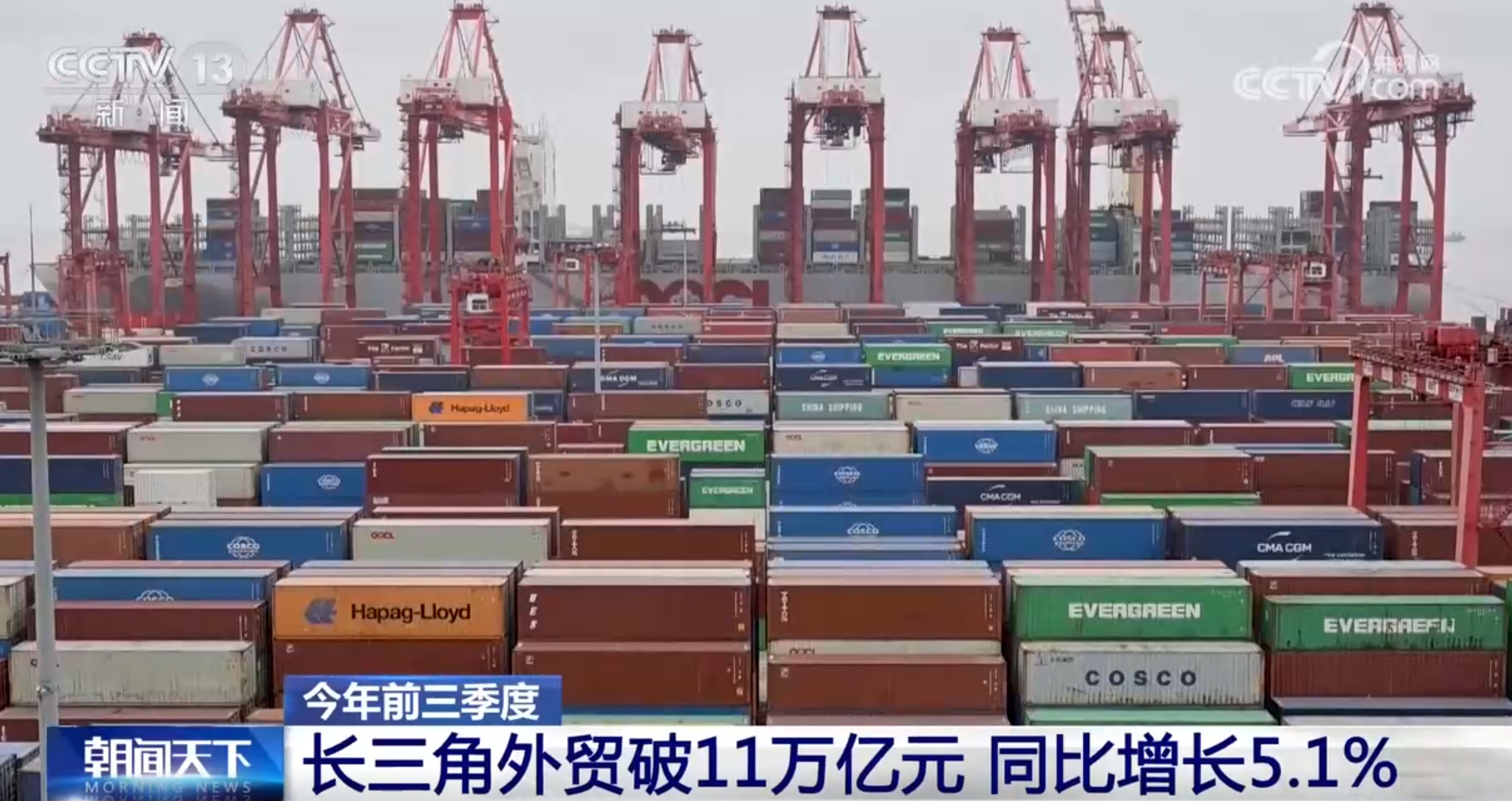 今年以来,长三角外贸持续跑出“加速度”。最新数据显示,今年前三季度,长三角外贸进出口总值再创历史新高。