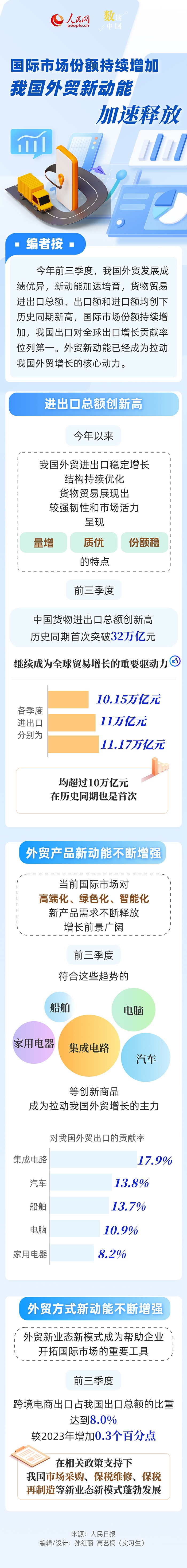数读中国|国际市场份额持续增加 外贸新动能加速释放