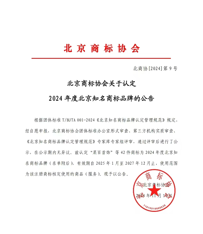 北京知名商标品牌评选由北京商标协会组织,具有权威性和专业性。评选严格依据《北京知名商标品牌认定管理规范》进行,需经过自愿申报、北京商标协会团体标准办公室初审、专家库专家组评审等多个环节。评选旨在保护北京市行政区域内依法设立的市场主体的知名商标品牌合法权益,促进商品及服务质量和商标信誉稳步提升,增强企业市场竞争能力,塑造首都知名商标品牌新形象,助力北京商标品牌高质量发展战略的实施。