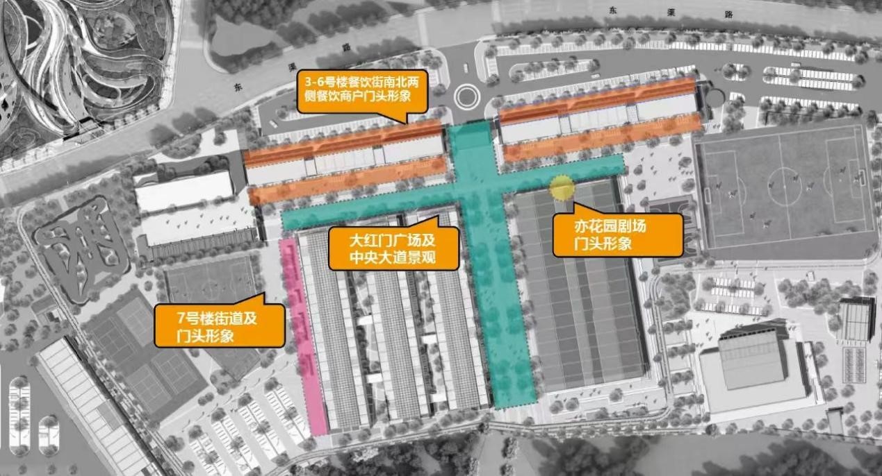 本次大赛设计范围广泛,包括但不限于大红门广场及中央大道景观、3-6号楼餐饮街门头形象、7号楼街道及门头形象以及亦花园剧场门头形象等。我们期待您能以独到的设计理念,对这些区域的建筑立面、景观雕塑、艺术装置、设施等进行深度解读与重构,创造出既新潮又实用的设计方案。