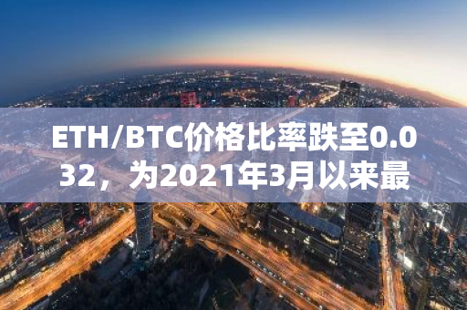 ETH/BTC价格比率跌至0.032,为2021年3月以来最低水平