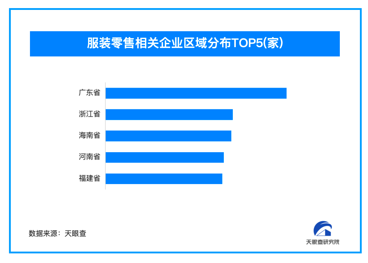 天眼查专业版数据显示,截至目前,我国现存服装零售相关企业2300万余家。其中,2024年1-10月,新增注册相关企业390万余家。从地域分布上看,广东、浙江和海南三地,服装零售相关企业数量位居前列,分别拥有240万余家、160万余家、160万余家;从成立时间来看,超5成的相关企业成立于1-5年内,5-10年内成立的相关企业占比19.78%。