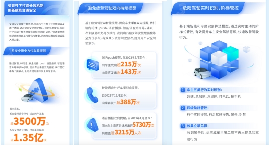 1、如今,端智能、AI算法和大模型等前沿技术已深入应用到顺风车安全的各个环节。比如行程录音语义识别干预、危险驾驶实时识别与阶梯管控等,极大提升安全干预的效率和精准度,且更主动更实时,让预防为主进一步落实。