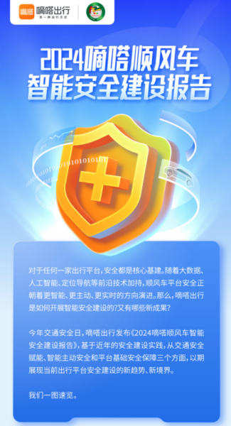 第十三个122“全国交通安全日”期间,嘀嗒出行发布《2024嘀嗒顺风车智能安全建设报告》,基于嘀嗒出行平台数据统计,从交通安全创新赋能,智能主动安全和平台基础安全保障三个方面,深入总结2023-2024近两年的安全建设实践成果经验,以期展现当前顺风出行平台安全建设的新趋势,新境界。