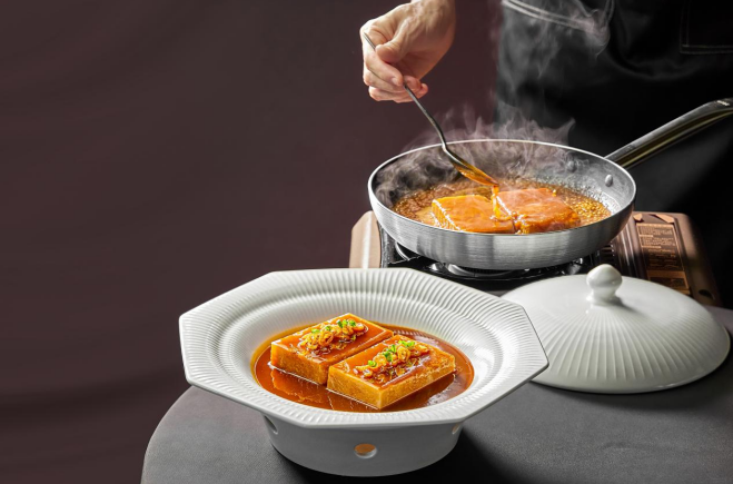 (图为“宴遇·福建荟馆”招牌菜原创葱油肉汁焗芋头