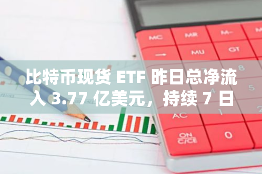 比特币现货 ETF 昨日总净流入 3.77 亿美元,持续 7 日净流入 更新时间:2024-12-07 14:30:59 •阅读 0 昨日(美东时间 12 月 6 日)比特币现货 ETF 总净流入 3.77 亿美元。