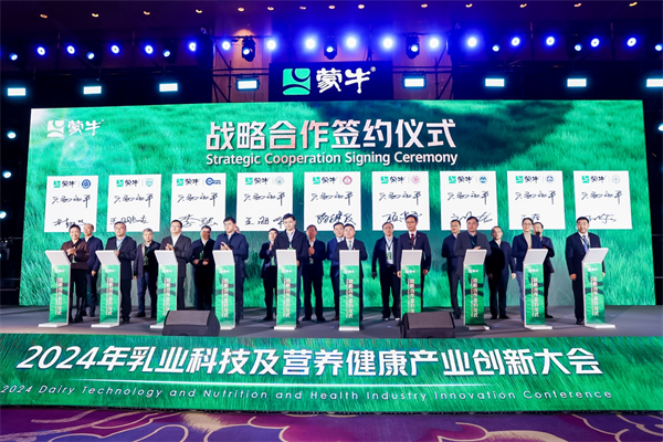 当天大会上,蒙牛再次与中科院生物物理研究所、中国标准化研究院、上海交通大学、中国农业科学院、中国农业大学、江南大学、北京工商大学、国科大杭州高等研究院、内蒙古农业大学等研究机构达成战略合作,旨在通过紧密合作,加速乳业科技的研发与应用、激发行业创新活力。