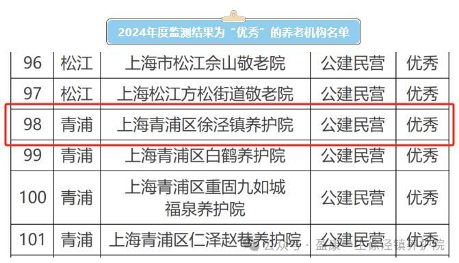 近日,上海市民政局通报了2024年度养老机构服务质量日常监测结果,此轮监测覆盖所有433家正常执业的养老机构,其中115家机构获评“优秀”、占比26.6%。盈康生命旗下徐泾镇养护院在此轮监测中结果为优秀,被授予“大笑脸”称号,继2023年后再获此殊荣。
