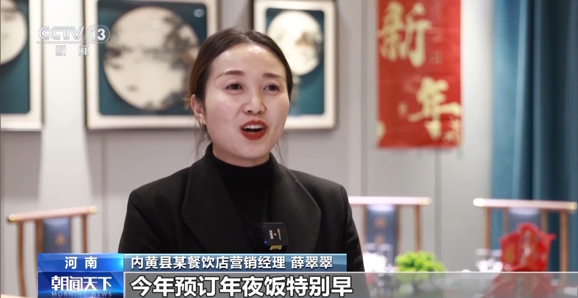 内黄县某餐饮店营销经理 薛翠翠:今年预订年夜饭特别早,尤其是我们的老客户在10月份已经开始预订,我们有30多个包房,从年初一到初六,到目前为止预订量已经达到80%。
