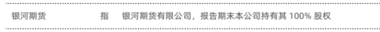 中国银河(601881.SH年报显示,中国银河对银河期货有限公司持股比例为100%。