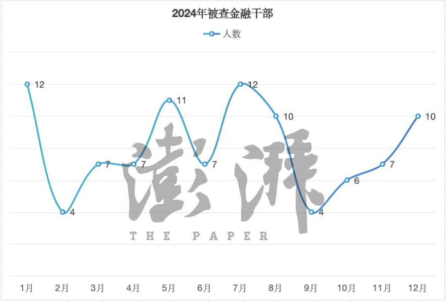 分月份看2024年被查金融干部 澎湃新闻据中央纪委国家监委网站不完全统计