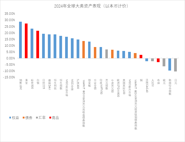 回望2024年的资本市场,如果你只单押一类资产,例如A股,那么持有体验可能没有那么良好,虽然A股在去年9月末迎来了柳暗花明,但在此之前市场经历了近200多天的震荡磨底期,非常考验人心。而同期的海外资产,如美股、美债、黄金都有不俗的表现。