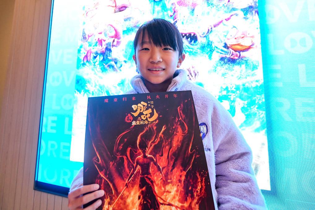 2月9日,观众展示在成都一影院换取的《哪吒2》海报。新华社记者唐文豪 摄