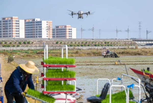 同样,无人机也在位于湖南东南部的攸县上空盘旋忙碌。