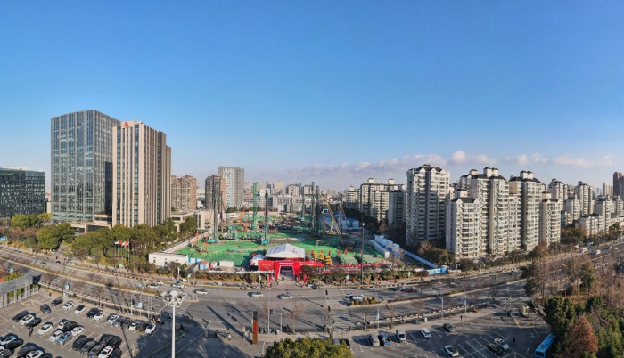 2025年1月9日,上海静安区2025年第一批重大项目集中开工仪式在灵石社区(自仪厂地块项目现场举行(无人机照片。新华社记者 方喆 摄