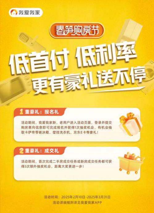 购房节期间,我爱我家为北京、上海等多个城市的新老用户准备了丰厚的福利,有购房需求的用户均可登录我爱我家APP或小程序,选择有意向成交的城市报名参与。活动期间提交购房意向即有机会抽取冰箱、高端炊具套装、智能门锁等实用家居好礼,首次完成购买二手房或新房交易的用户还可以额外获得3次抽奖机会,让幸运加倍。