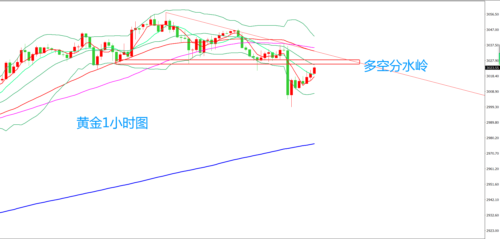 黄金周五大幅回调,周五我们也参与了空单,白盘我是看涨的,多单被回调止损了,在下午时段,黄金始终承压于3035一线压制后,我们在3033也参与了空头,所以,黄金周五的下跌,我们同样参与了空单,我们不可能看对所有行情,但在关键转折点出现之后,即使调整思路,一样不晚。