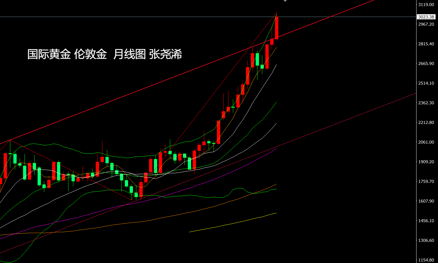 但如本月最终再度大幅回撤倒垂收线,或者是下个月收取阴包阳形态,则有反弹见顶走回调的预期,并调整至2500美元附近的倾向。