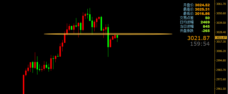黄金早盘在3024/5附近空,防守3032,目标3010/3002附近,回踩3000附近多,防守2993,目标3020上方