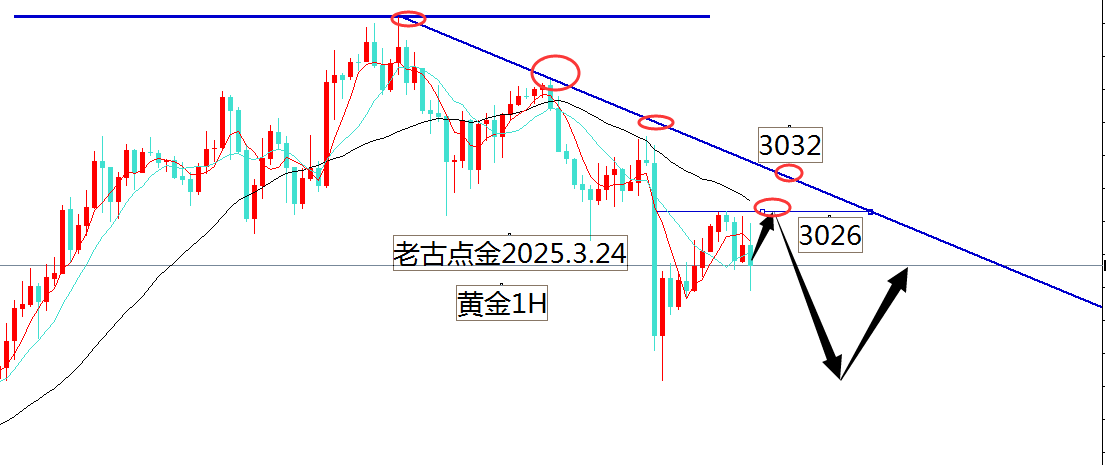 上周的黄金一直涨在周五突然转头开始回吐,我们也是在它回吐时终结了12连胜,3020这个位置破了,短期就没有那么强势了,黄金大顶来了吗?这个是目前交易者关注的焦点,就前面的形态和均线指标来看,它的调整还没有改变周线趋势,周线上周还是收阳的,只是有比较长的上影线,大顶是需要时间和空间来换取的,就目前老古认为有筑顶痕迹,但是没有见顶,长期趋势还是多,短线开始修复,本周思路我们就不要一直看涨了应该调整了,今天我们先看区间跌,震荡一定要把握好节奏才可以抓大利润。