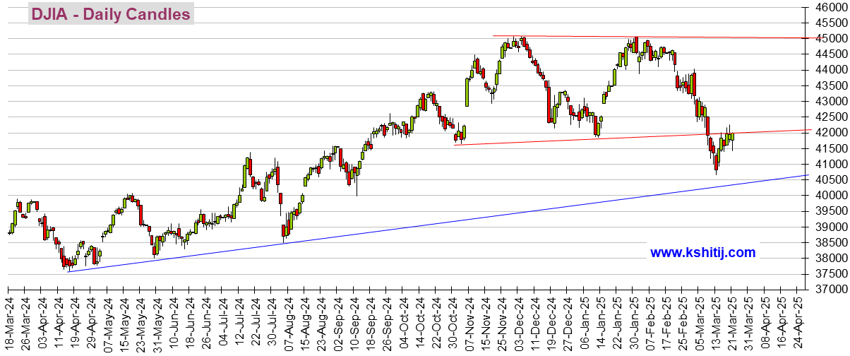 道琼斯指数反弹,在42000点附近震荡。更广泛的看跌观点(40000-39000点)仍然完好。如果强劲突破42200点,该指数可能延续升势至43000点,然后恢复下跌走势。