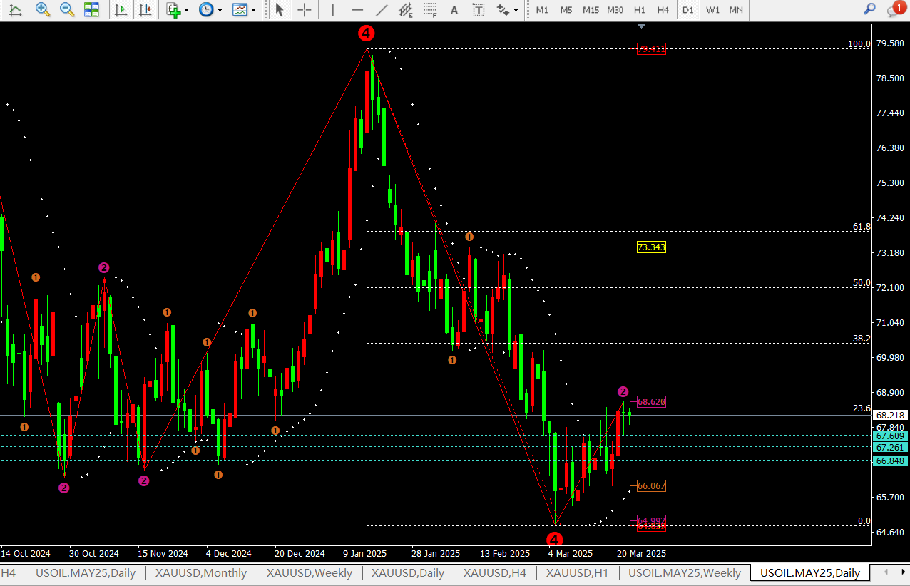 ①直接在67.7-8附近追多看69-70 ②保持空仓等价格回落67-67.3区间多。