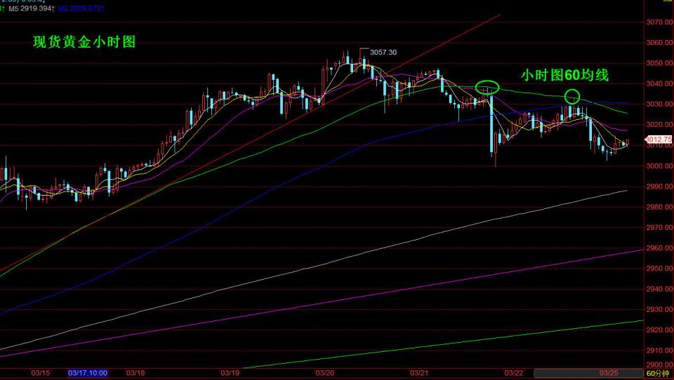 今明两天或许都是过渡日,从图中我们可以看出,上周最后3038-39的下跌,以及昨天3033.30下跌都是测试小时图60均线下跌,后面的话,下方就是守住昨天低点继续低多,破位风控,上方的话继续关注小时图60均线攻守,测试的话还关注冲高回落,如果突破的话则有望进一步上行,下方同理,如果再度破位3000的话黄金有望转弱。