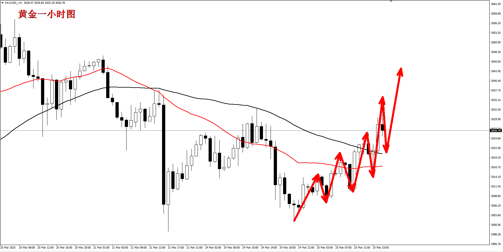 金价晚间突破3033一线,仅仅只是刺破没站稳,但黄金能够去试探上方的压力也就能够说明黄金还会有进一步上涨的可能,刺破调整下一步才会有更大的能量去拿下3033一线,我们明确了市场的方向,盘中择机入场做多即可!当下关注下方支撑3020一线做多!