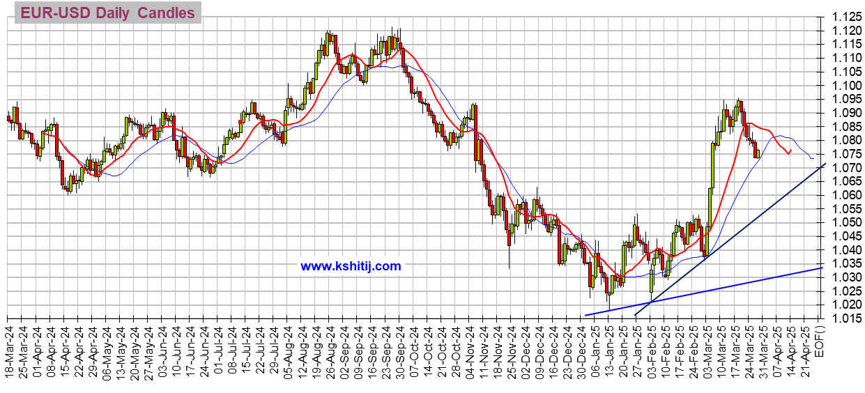 特朗普对进口汽车和轻型卡车征收25%关税的消息传出后,美元指数升至104.68的高点。短期阻力位于105.00-105.25区域,需要突破该区域,以结束下行趋势。这是否会发生还不确定。只要维持在105.25下方,美元指数可能容易回落向103.75或更低水平。美国GDP数据定于今日发布。