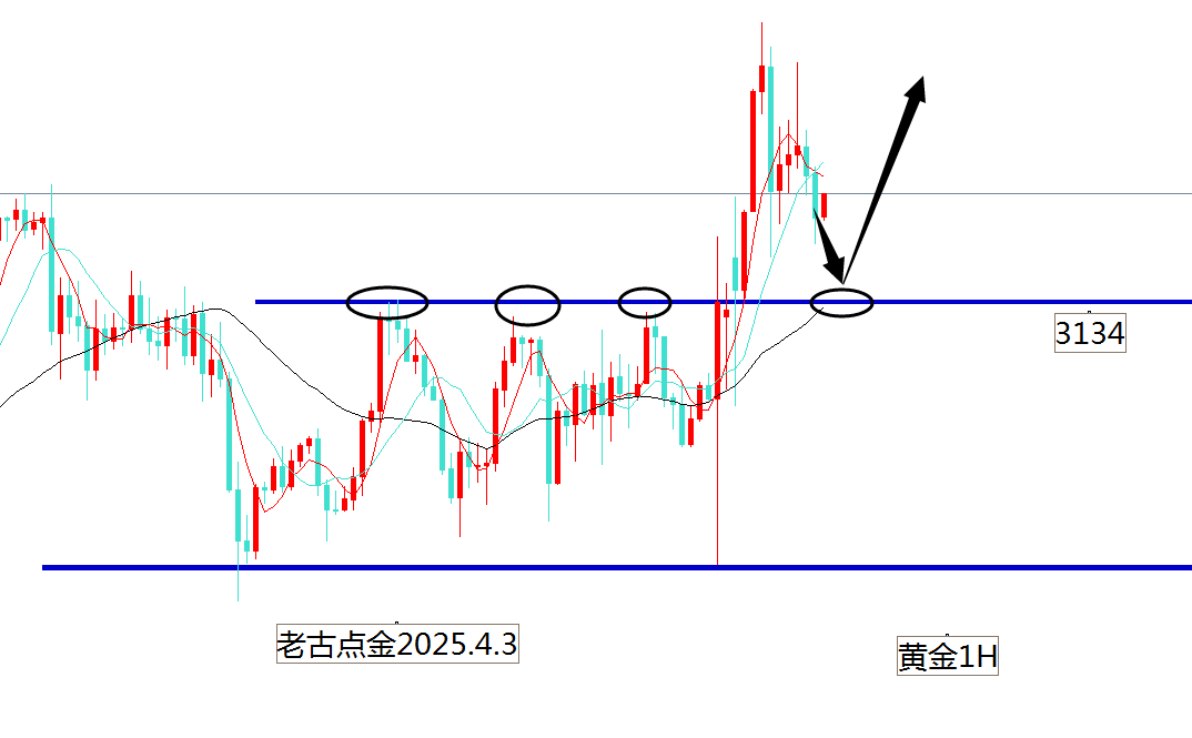 我们之前预估黄金会到3200被人嘲讽,现在看看黄金的3200即将到了,这波黄金不是因为简简单单的基本面可以拉升起来的,国际局势非常不稳定,中东局势,俄乌局势,加上川普来了又搞贸易战,黄金难出现周线级的大跌趋势,昨天晚上再次释放了关税导致黄金强势拉升,今天的思路毋庸置疑的继续看涨,昨天的我们布局了3134空,3123空,3132空,3110多全部吃肉,其中3110多半夜到不计算,今天我们先找结构支撑去多,早盘出现了回落,日线的均线开始抬头,今天先修复后在拉升。