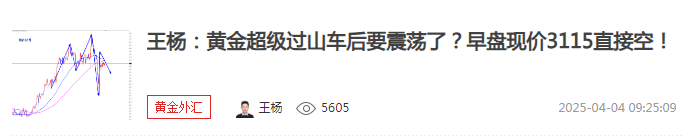 王杨:黄金早盘3115空如期下跌收割,反弹继续空!