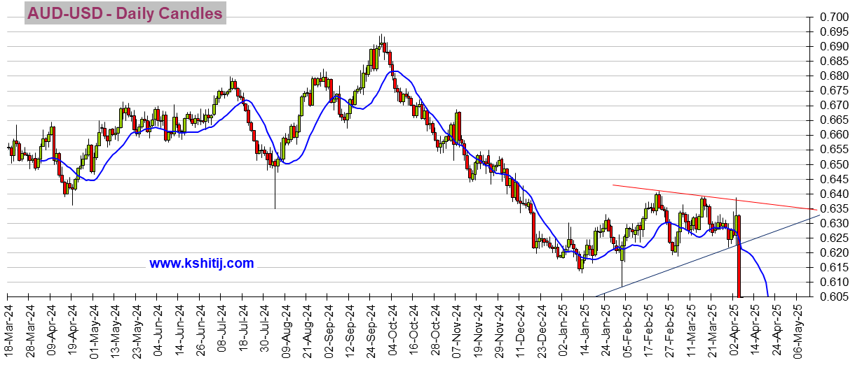 澳元/美元大幅跌破0.62,至0.5932的低点,因市场担心全球贸易战可能使经济陷入衰退,澳洲联储可能在5月份更大幅度的降息。如果这种猜测继续下去,跌势可能会扩大到0.575。该货币对将不得不突破阻力位0.61上方,以抵消预期的跌势。