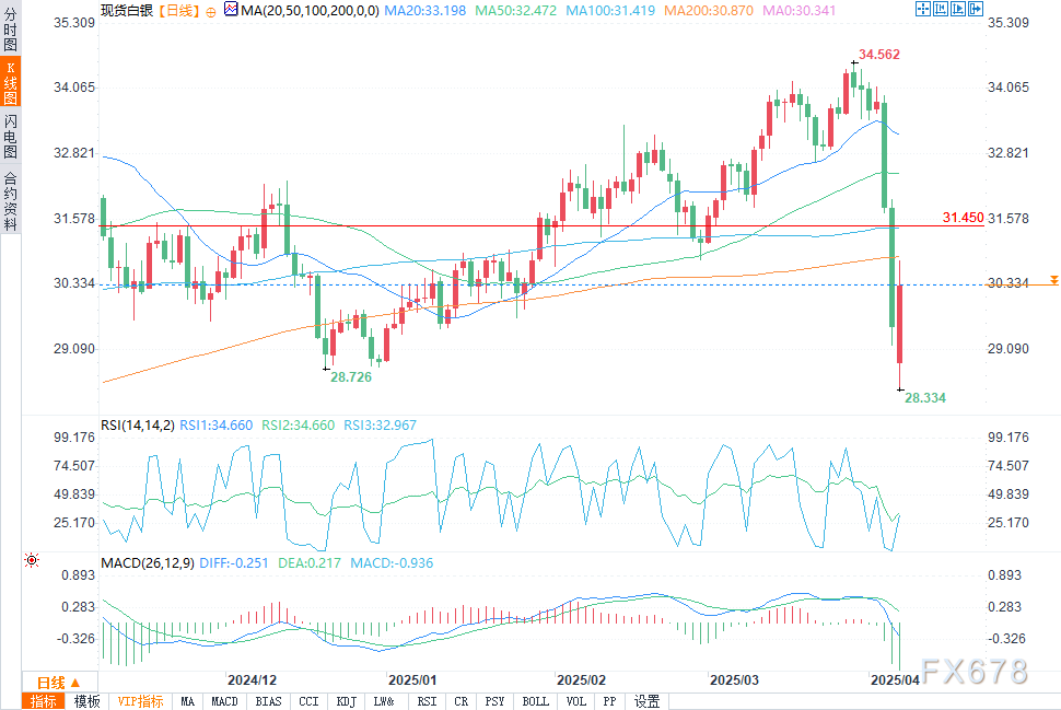 特朗普的全面关税计划,包括对来自180个国家的商品征收10%的基准关税,已经扰乱了全球制造业的信心。一些国家可能采取对美国商品征收关税作为回应,尤其是对美国半导体征收关税,将会直接影响对白银需求密集的行业。关税对全球制造业需求造成的拖累给白银带来了压力,亚洲和欧洲的工业买家目前购买情绪消极。