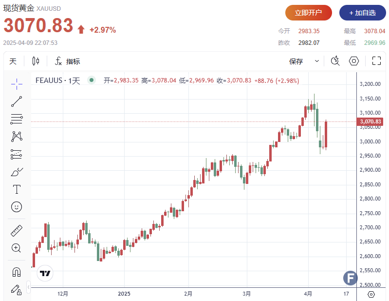 中美关税升级引发避险买盘,黄金多头“拿下”3070!