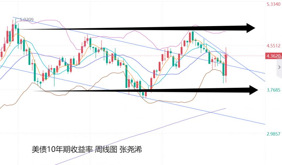 美债10年期收益率,日图昨日大幅冲高后回撤倒垂收线在今年以来的回落趋势之内,未能稳健突破压力,也暗示仍有保持今年回落趋势继续走低的预期,而会支持金价;