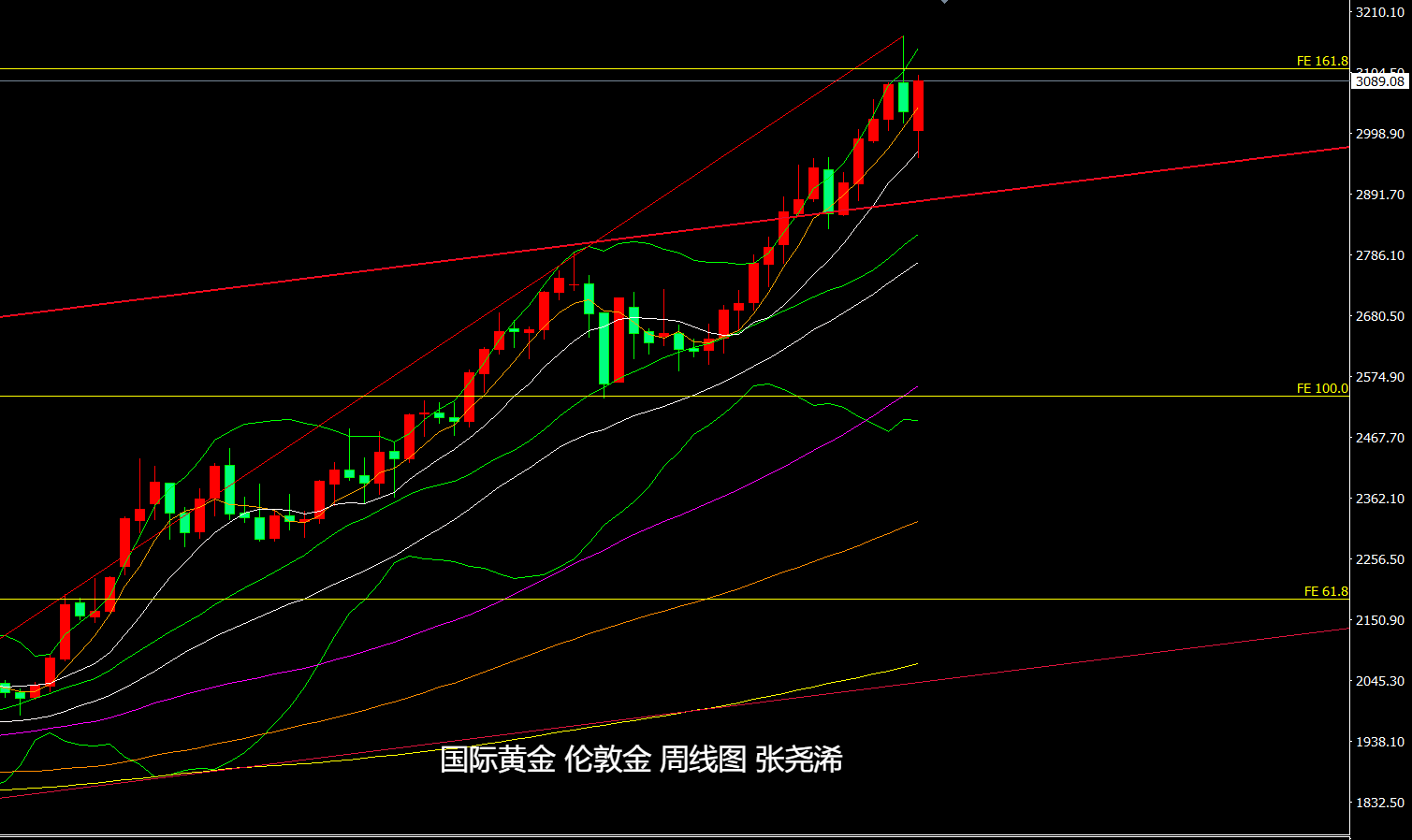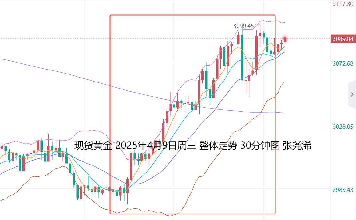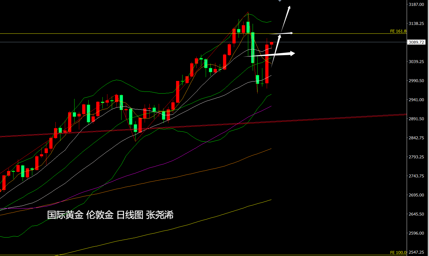 具体走势上,金价自亚市开于2983.24美元/盎司,先行震荡走低,录得日内低点2970.10美元,之后则止跌回升,持续反弹,一路延续到美盘时段,走出50美金的震荡行情和过山车走势,但最终多头仍占据优势,而录得日内高点3099.19美元,并持稳收于3082.88美元,日振幅129.09美元,收涨99.64美元,涨幅3.34%。