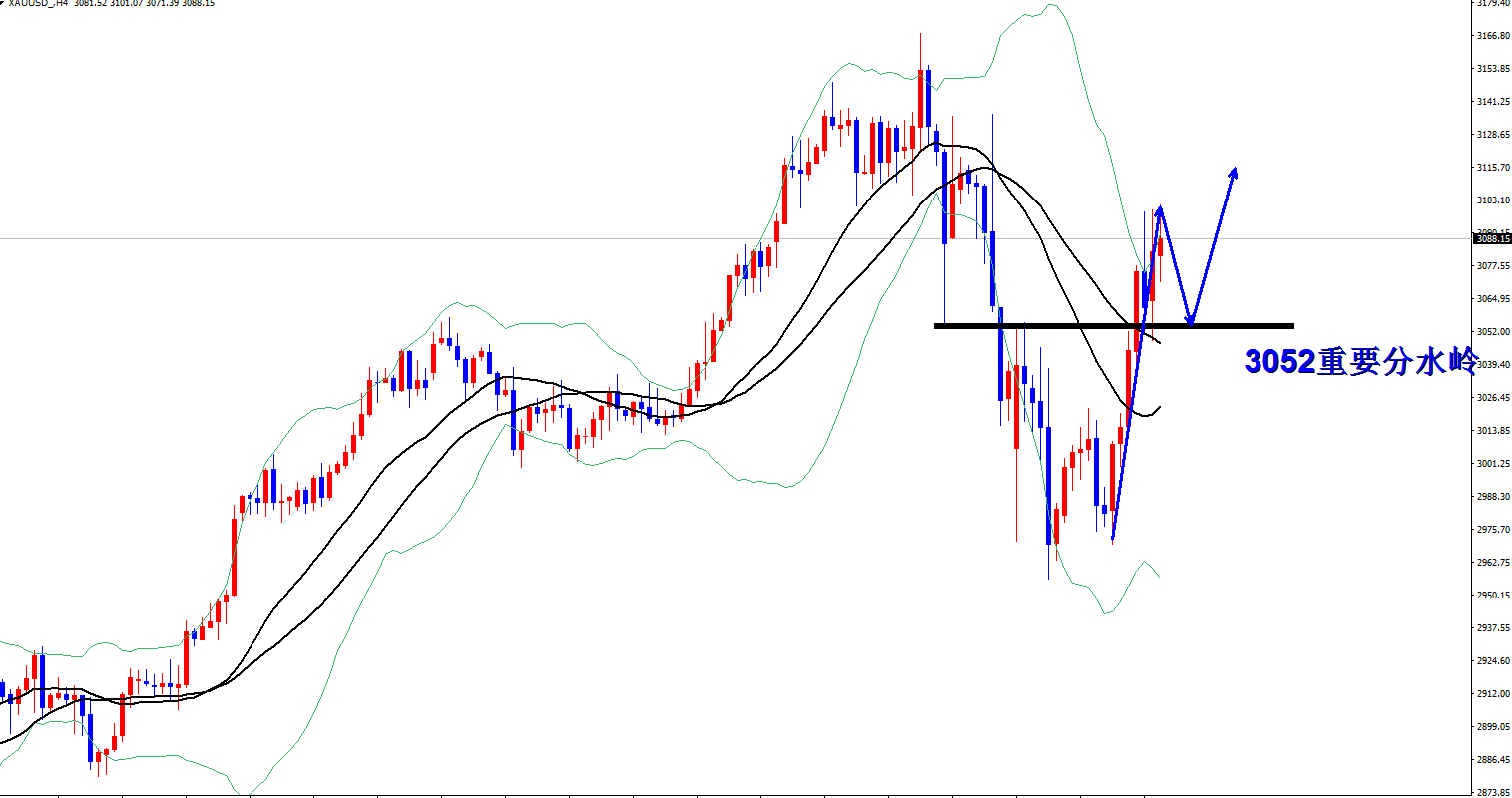 4小时周期黄金升破重要的压力位3052,且成功突破且站稳均线,这就是上涨强劲的信号。3052被突破,已经从压力位变为支撑位,所以我们今天会在均线和3052关卡之上逢低做多黄金。