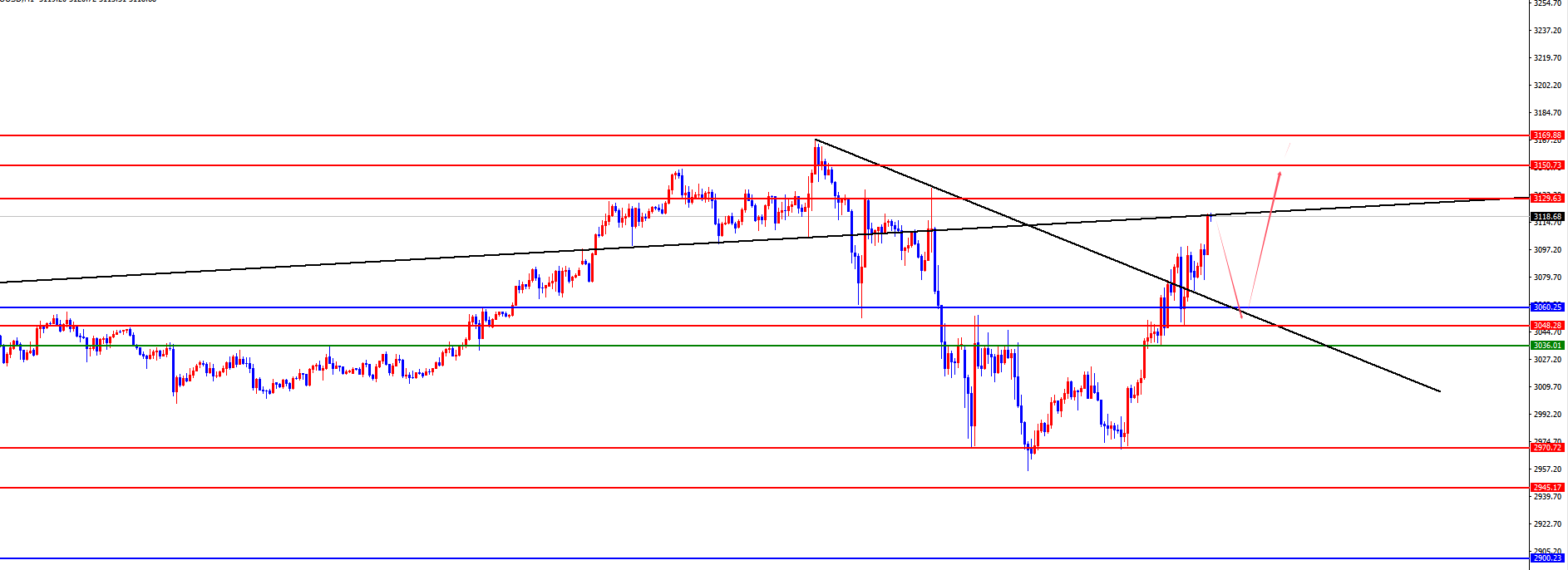 黄金3050区域多,防守3035,目标3130-3150-3170