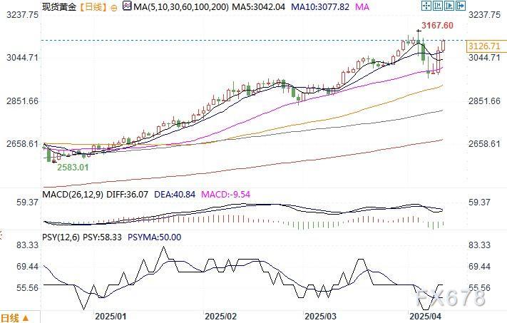 北京时间4月10日12:23 现货黄金 报 3125.75 美元/盎司
