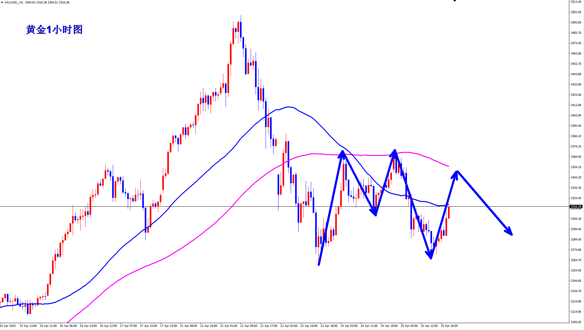 黄金1小时均线还是继续空头排列,不过黄金探底3265附近一线支撑后,黄金又反弹来50多美金,那么这个反弹是反转吗?还不一定,因为现在每天基本上都是100来美金的波动,反弹50美金来说还不好说是反转了。下周的强弱才是关键,黄金下周如果反弹不是很强势,那么黄金依然还是震荡偏空的行情,黄金1小时上方均线的阻力在3354附近,黄金周五阴线实体顶部在3352附近,那么下周没有有效突破这两个位置之前,那么还是震荡偏空的走势。