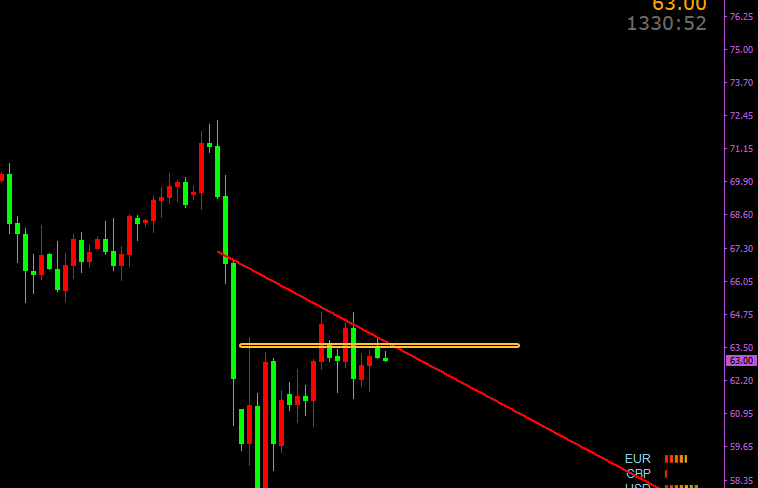 原油反弹在63.6附近空,防守64.4,目标看62/61一线