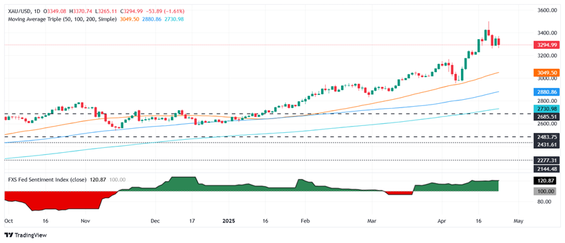 Valencia指出,因买家缺乏将金价推高至3400美元/盎司上方的意愿,金价已经跌至3300美元/盎司下方。此外,相对强弱指数(RSI)显示,买家的势头正在减弱。这为卖家推动金价下滑扫清了道路。