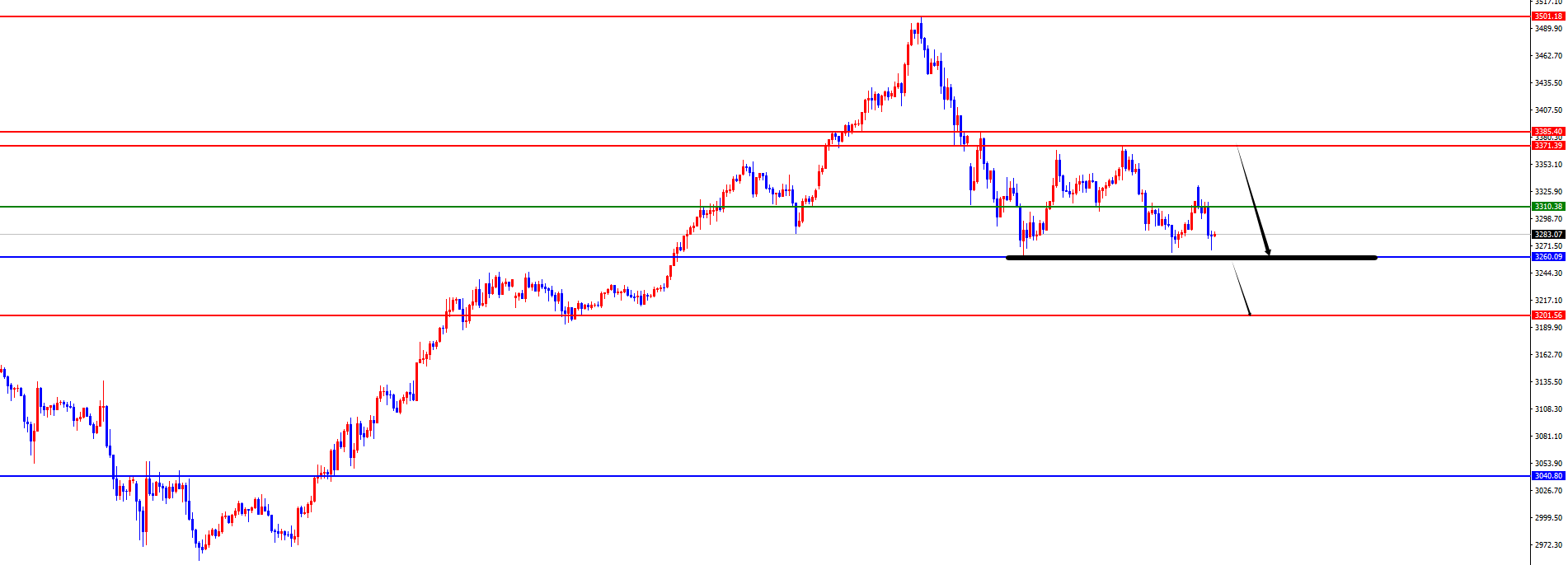 黄金3370-3371区间空,防守3390,目标3260-3200(如若先下破日线支撑3260则后续需要关注延续)
