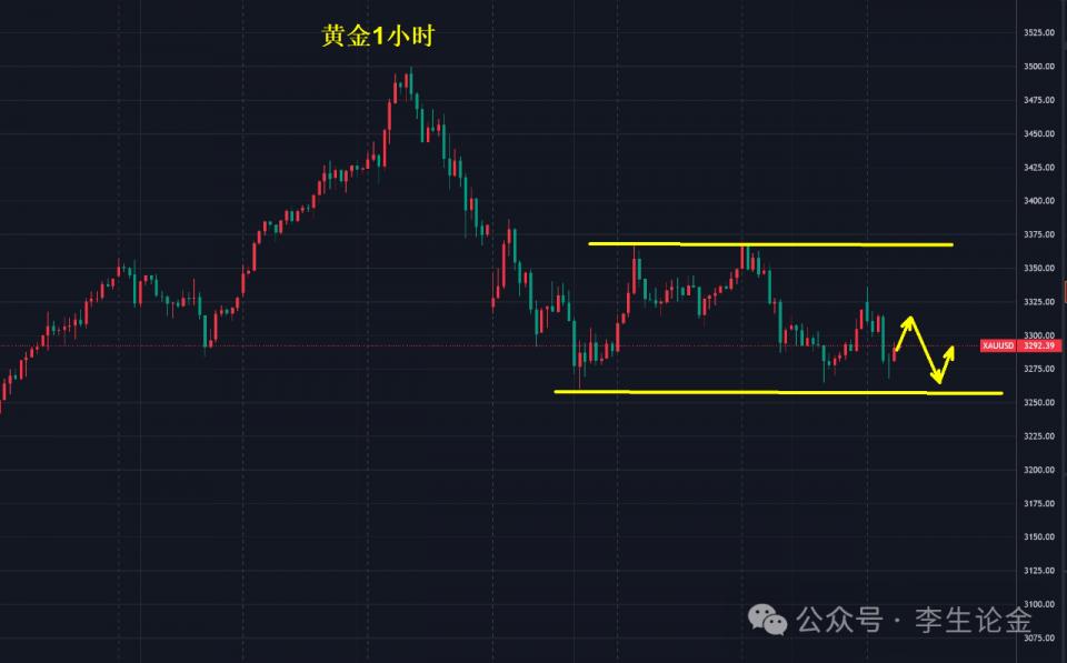 所以,今天我认为反弹之后在3300-15美元的范围内可以短线空,下方重点关注3270-60美元的得失,尤其是3260美元的位置,这里破位空头才会延续,否则就是继续保持箱体震荡,记住,只要反弹重新站上3340美元,此次调整宣布结束!