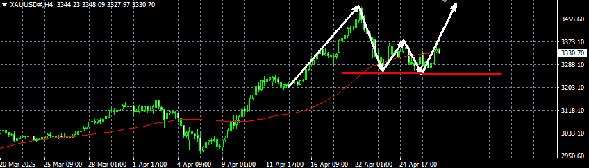 黄金日线还是保持均线上方运行,同时也是收下影线了,k线始终站稳均线了,踩着均线拉升,这种多头显然还是顽强的,均线也是保持向上运行,阳线全部都是大阳线,日线级别多头没有变,多头继续冲历史新高,多,3310支撑线多