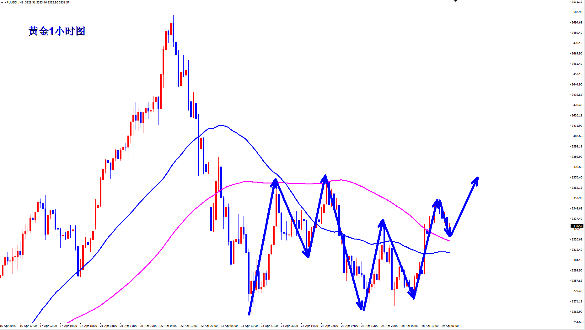 黄金多次下探3260-3270区域获得支撑,黄金短线已经形成多重底部结构,那么黄金短线可能调整结束,黄金早盘现价3330直接多。