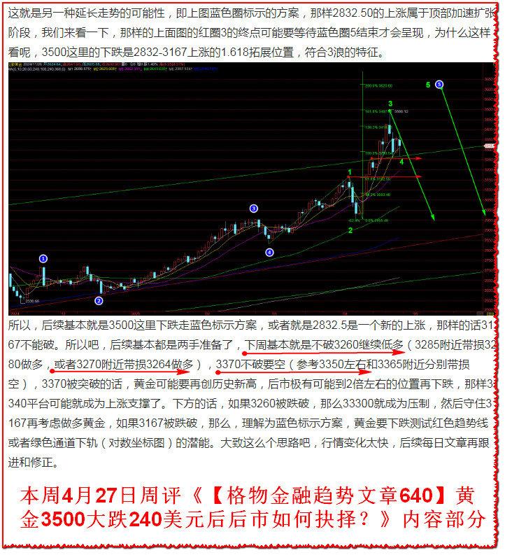 本周周评文章《【格物金融趋势文章640】黄金3500大跌240美元后后市如何抉择?》黄金还可能上涨延长,只有跌破3260才是c下跌的延续,所以,周评给的方案是3270附近做多,然后上方是3350做空,昨天的话黄金最低3268上涨,最高3353下跌基本已经完成这个动作。