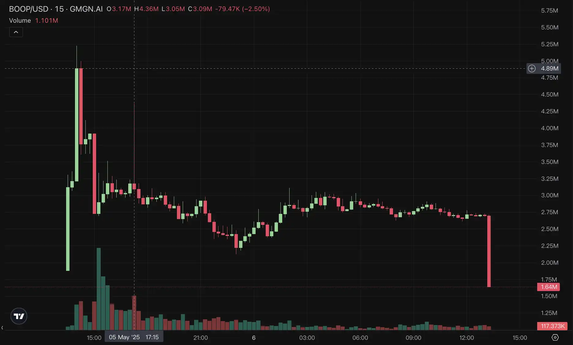 5 月 1 日,据 GMGN 行情数据显示,Solana 上 Meme 币启动平台 Boop.fun 平台币 BOOP 市值短时突破 5 亿美元,现报 4.61 亿美元,上线 1 个半小时交易额达 6220 万美元。5 月 5 日,据官方消息,Binance Alpha 上线 BSC 链上 BOOP。